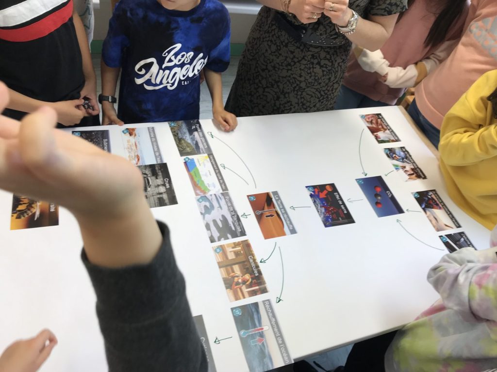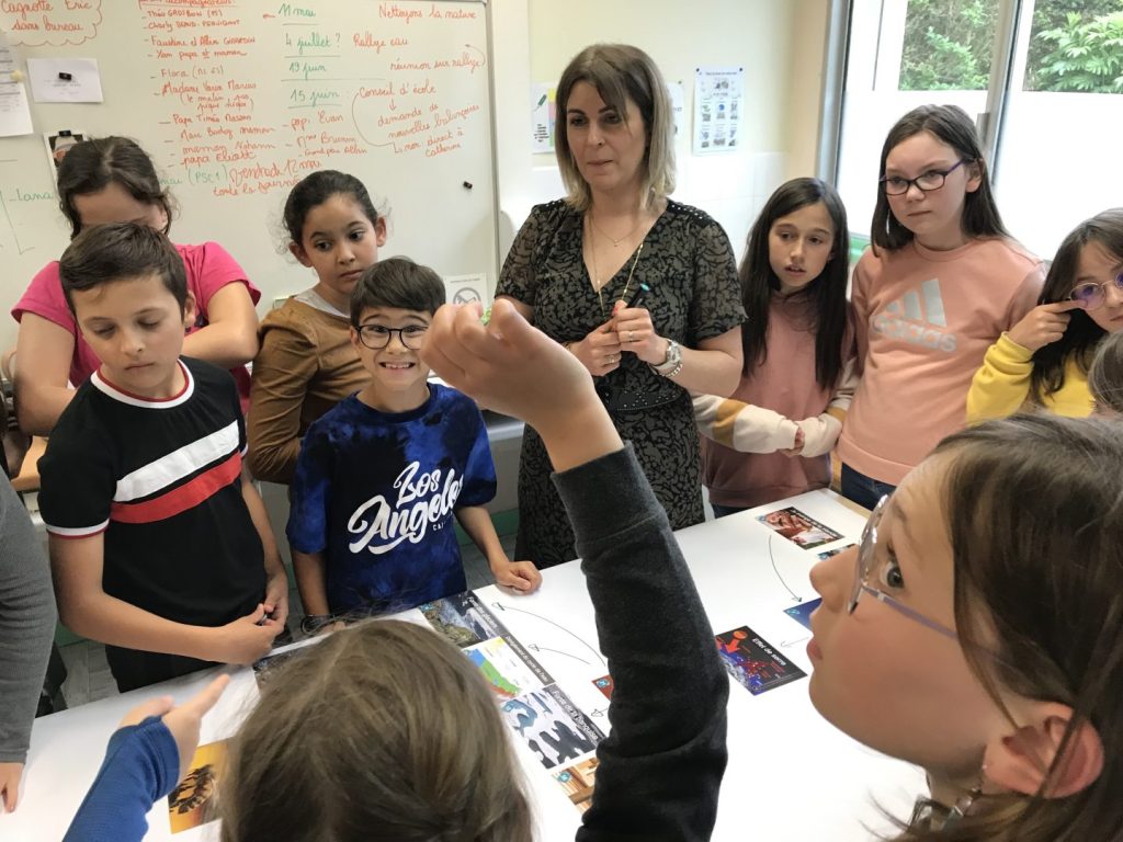 Ce mardi 9 mai, la classe de CM1-CM2 a pu bénéficier de l’animation appelée « La fresque du climat » grâce à Stéphanie Louis, maman d’élèves de l’école.