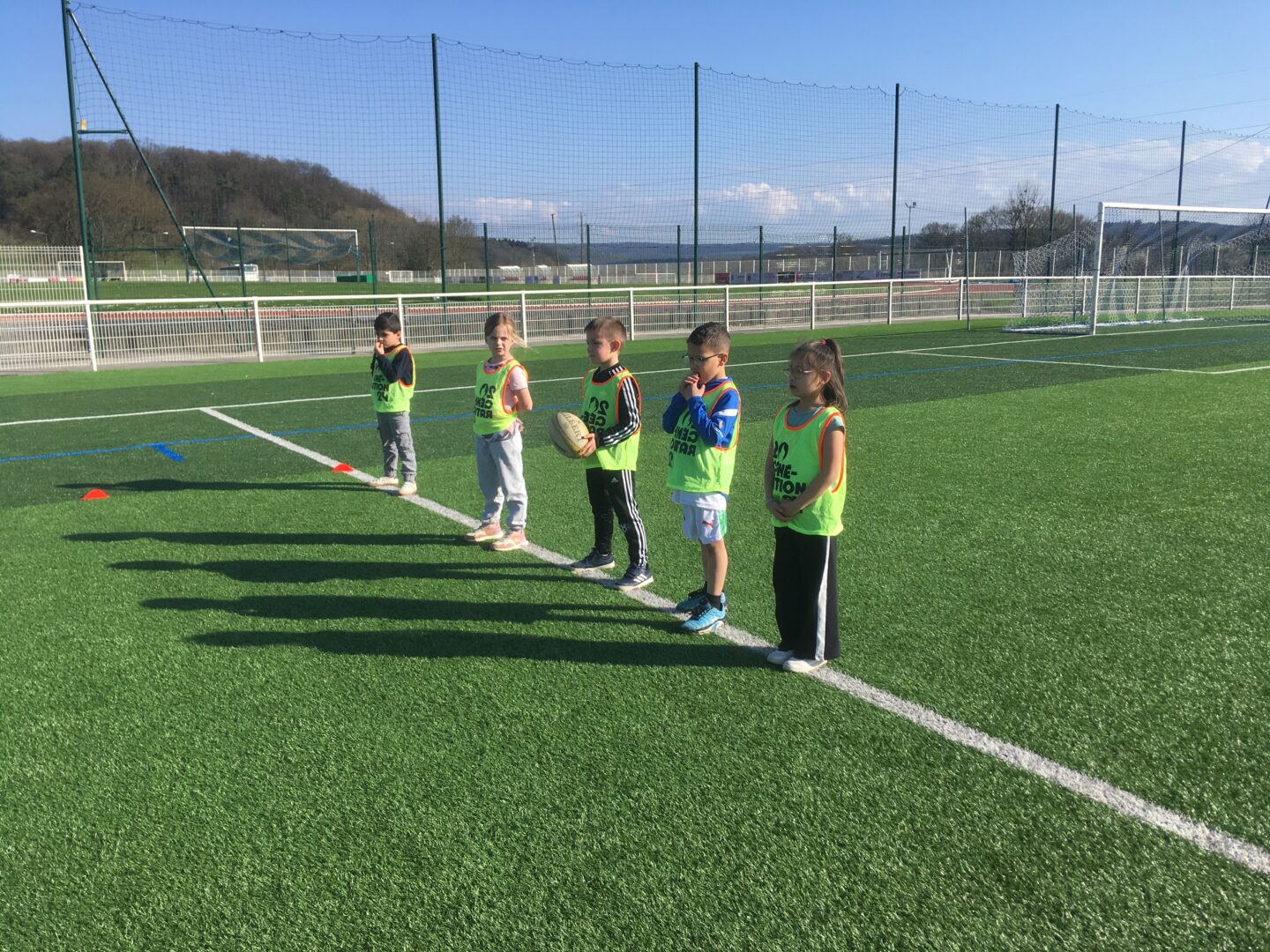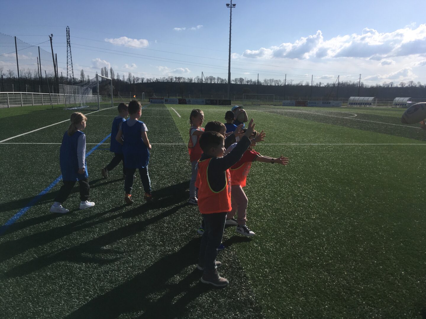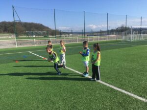 Avec le soleil qui revient, M.MAIGROT, notre éducateur sportif, a débuté un cycle « balle ovale » avec les élèves de CP. De beaux progrès !