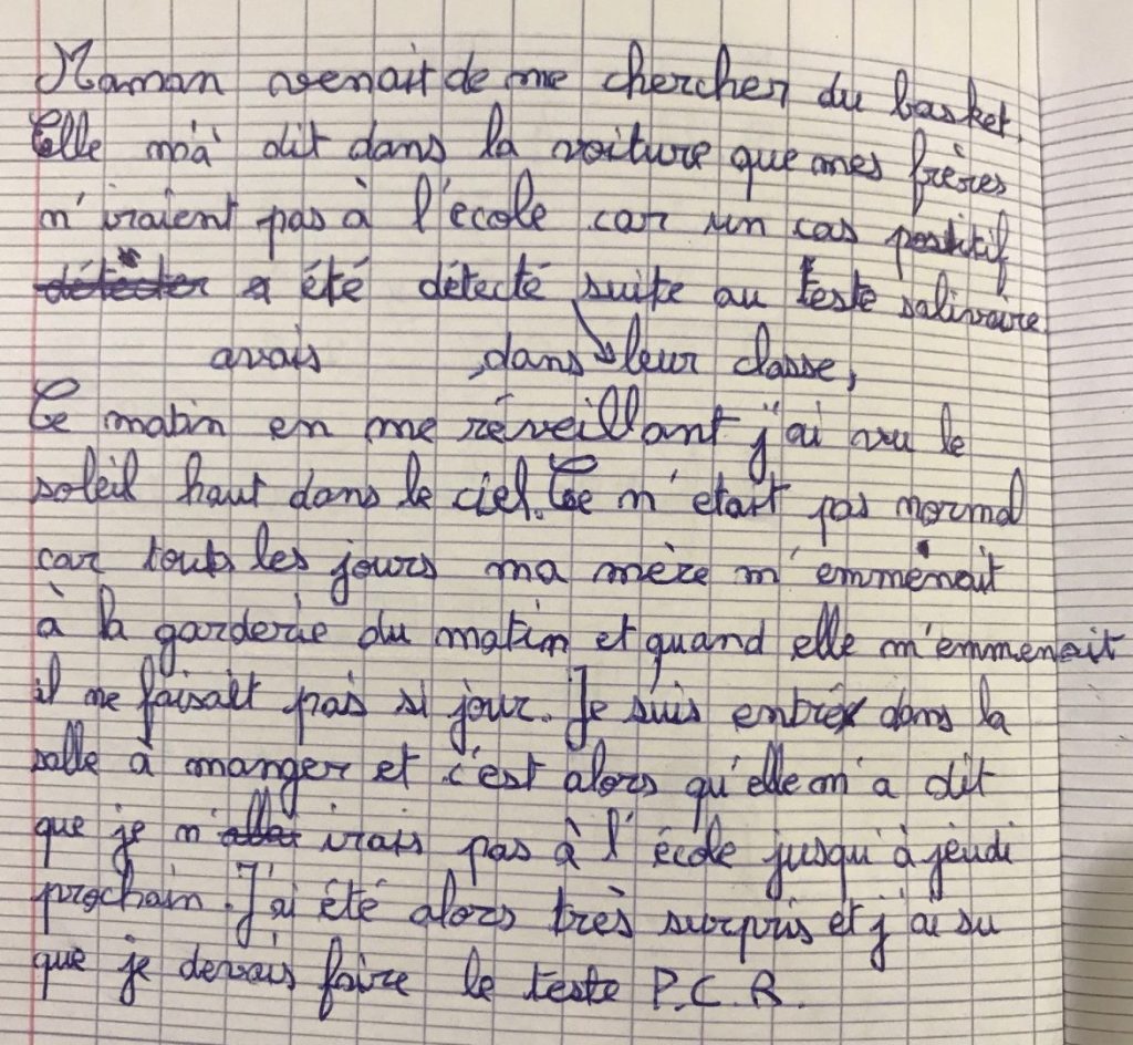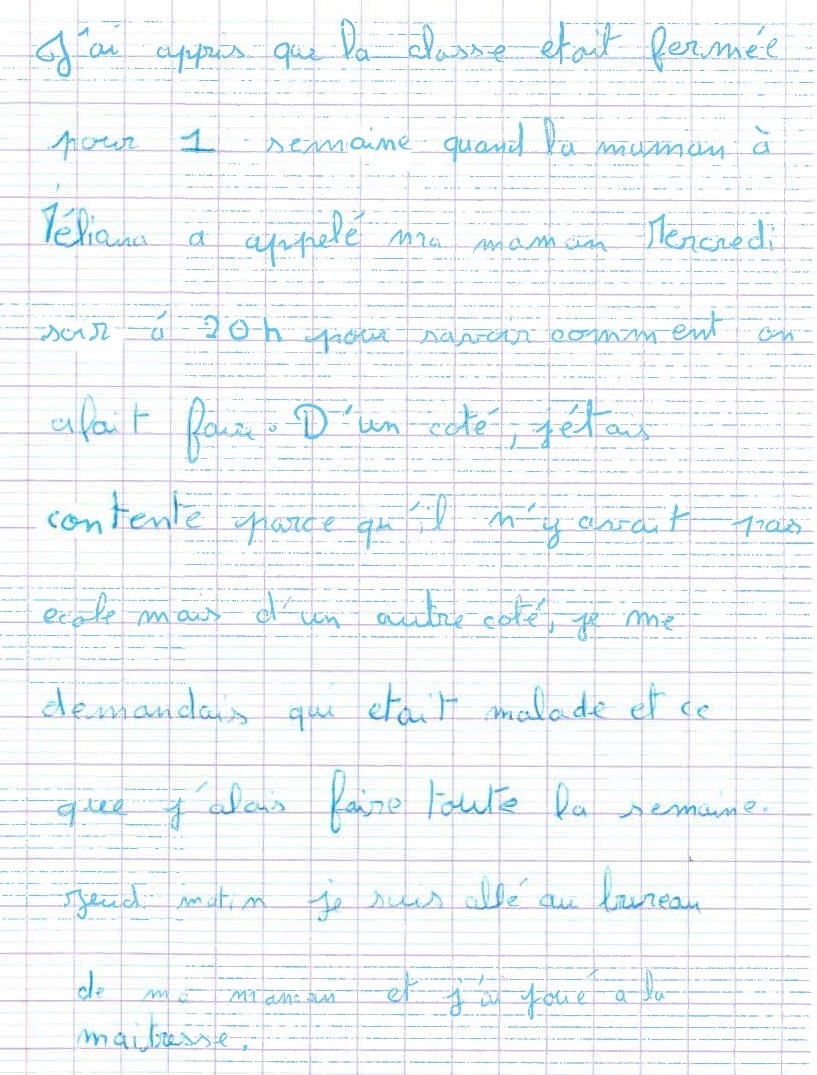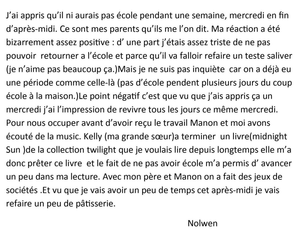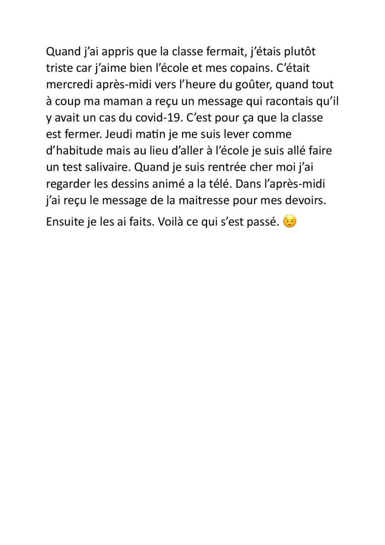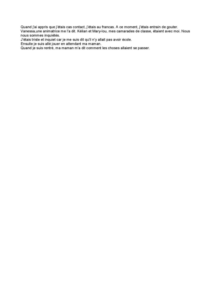 Écris un texte de 10 à 15 lignes dans lequel tu racontes comment tu as réagi lorsque tu as appris que tu n’allais pas pouvoir venir à l’école pendant une semaine.