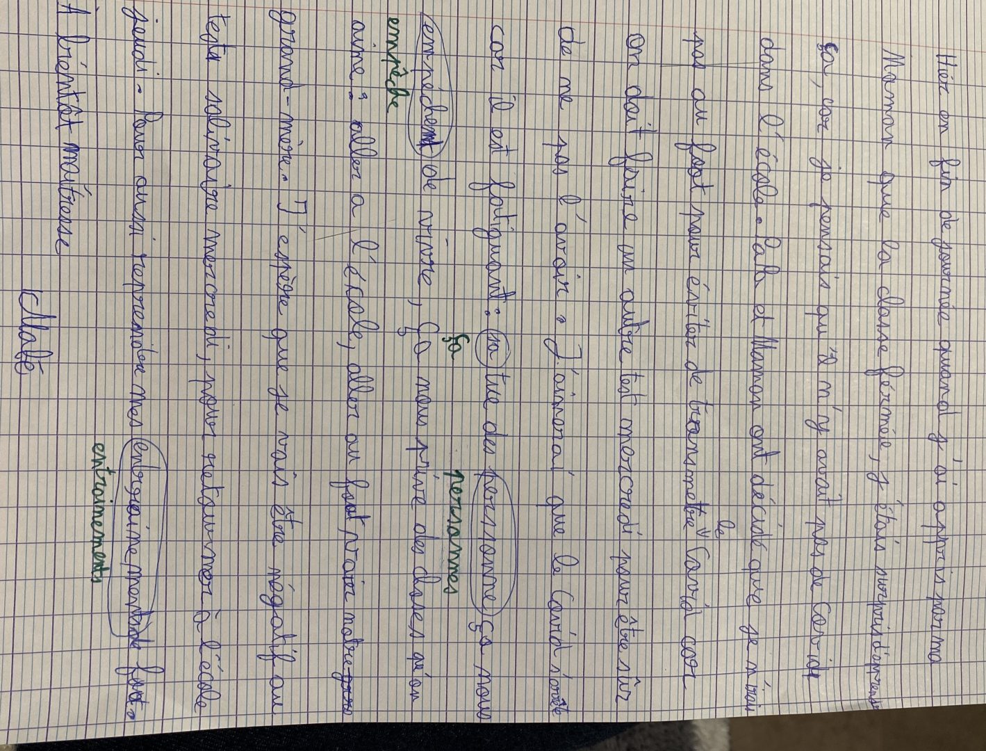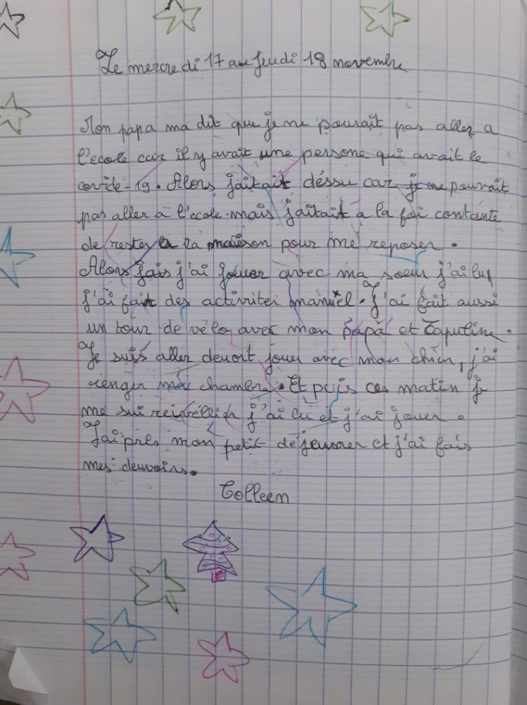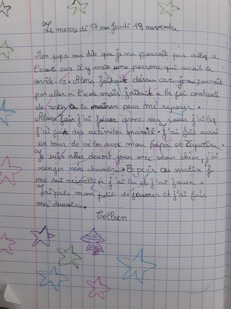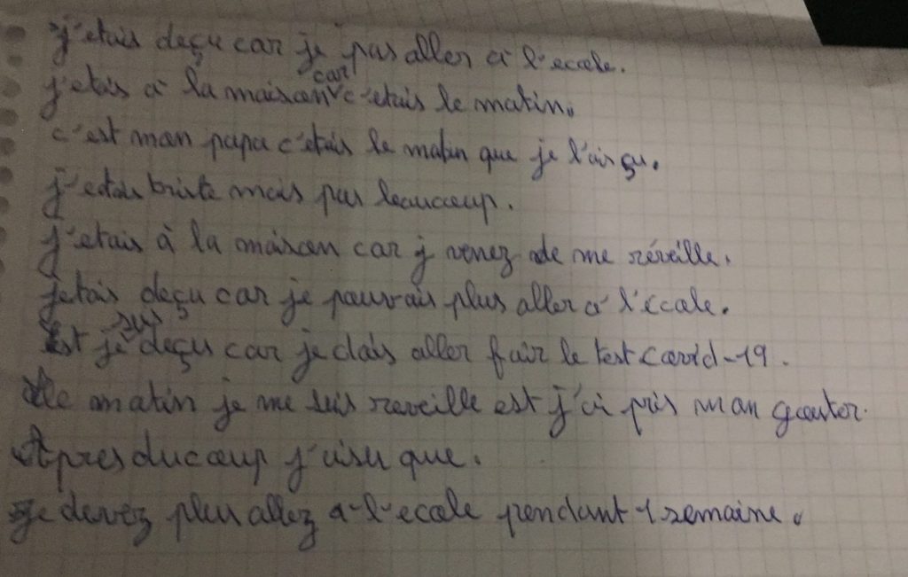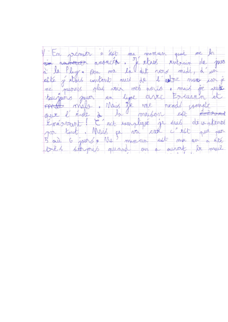 Écris un texte de 10 à 15 lignes dans lequel tu racontes comment tu as réagi lorsque tu as appris que tu n’allais pas pouvoir venir à l’école pendant une semaine.
