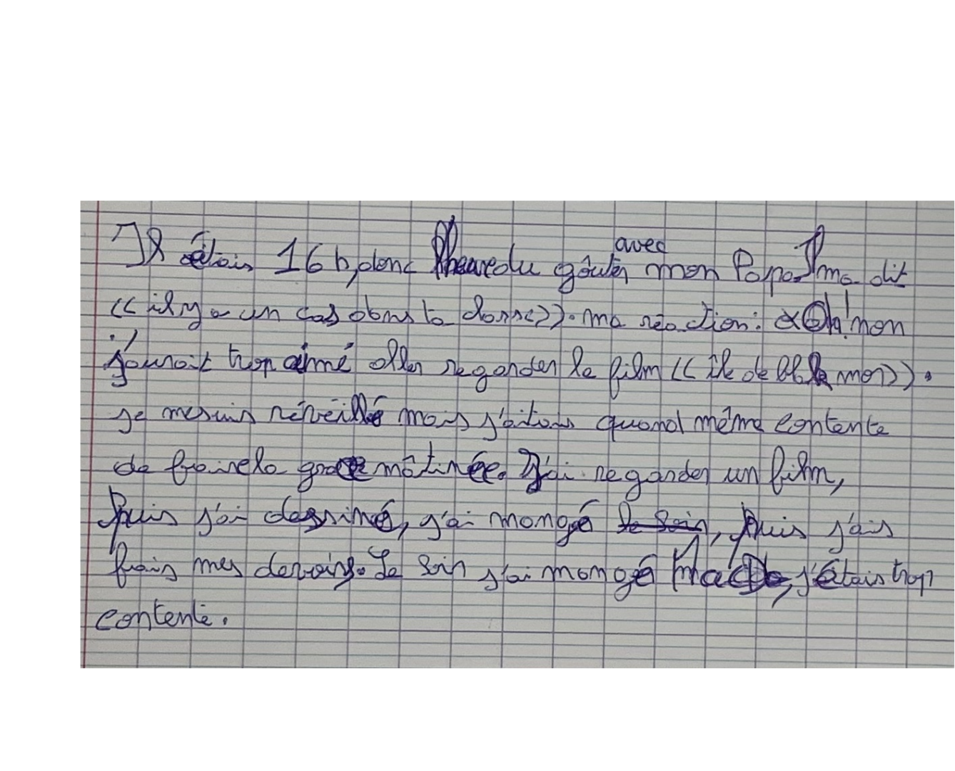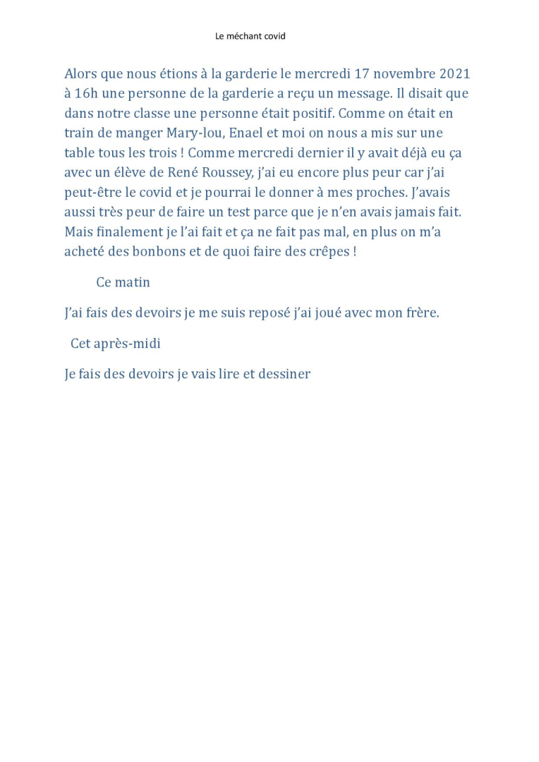 Si ton texte n’est pas assez long, tu peux ajouter ce que tu as fait ce matin pour t’occuper, en attendant que j’envoie du travail.