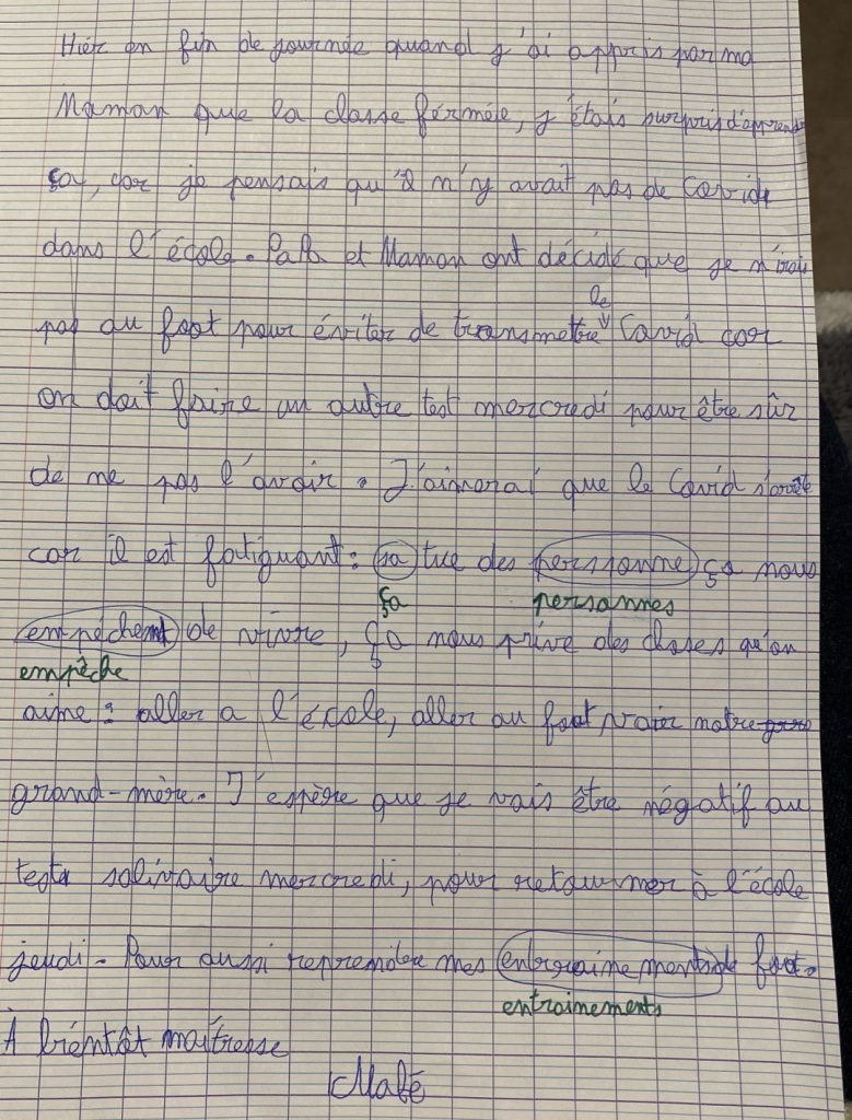 Avec la fermeture de la classe, on est bien obligé de reprendre les habitudes oubliées depuis 2019 …