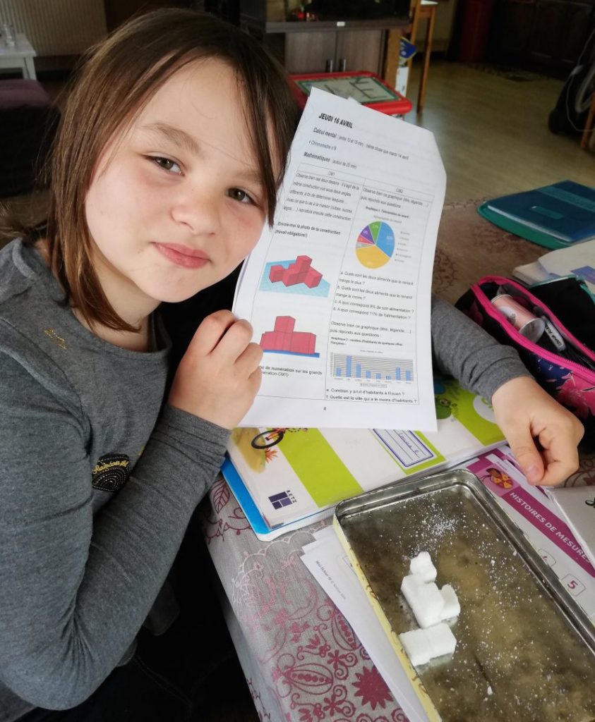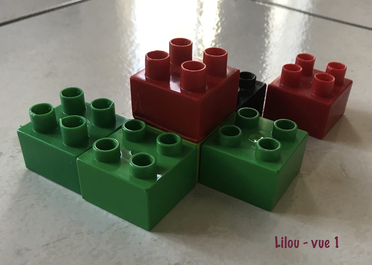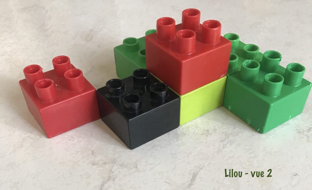Dans le travail donné cette semaine, les CM1 devraient essayer de reconstruire avec ce qu’ils avaient à disposition à la maison la construction ci-dessous :