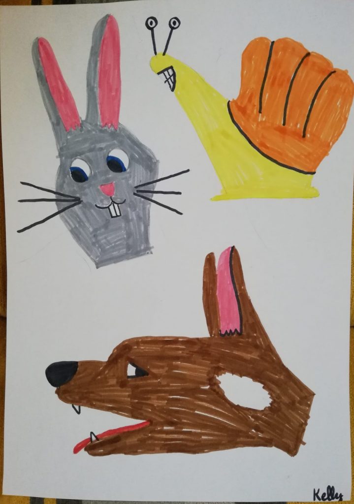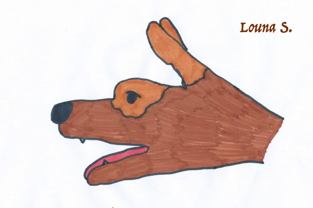 Puis j’ai proposé aux élèves d’utiliser leurs mains pour dessiner des animaux,