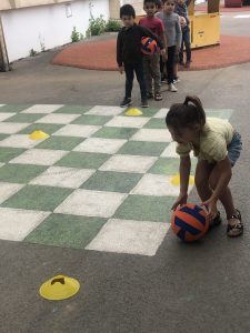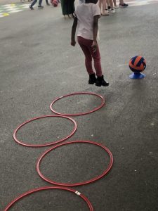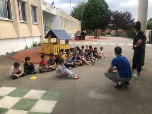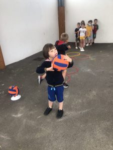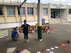 Clément et Tess sont venus vendredi matin pour nous apprendre à manipuler le ballon de volley.