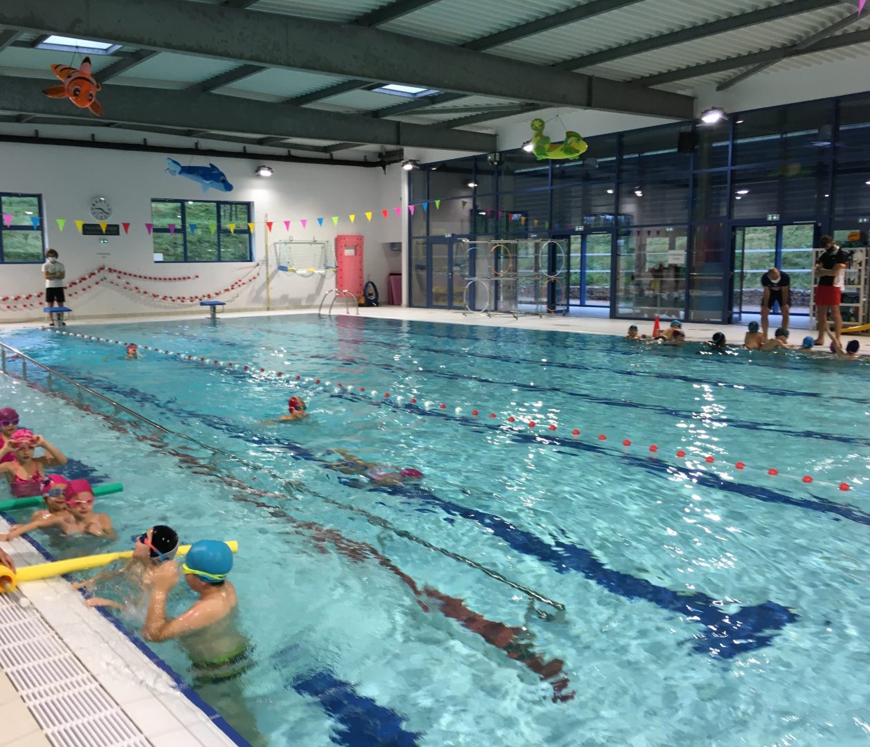 1 maître nageur prend en charge le groupe le plus à l’aise dans l’eau puis Hervé Maigrot encadre un autre groupe. Les maîtresses aidées d’un autre maître nageur s’occupent des élèves débutants .