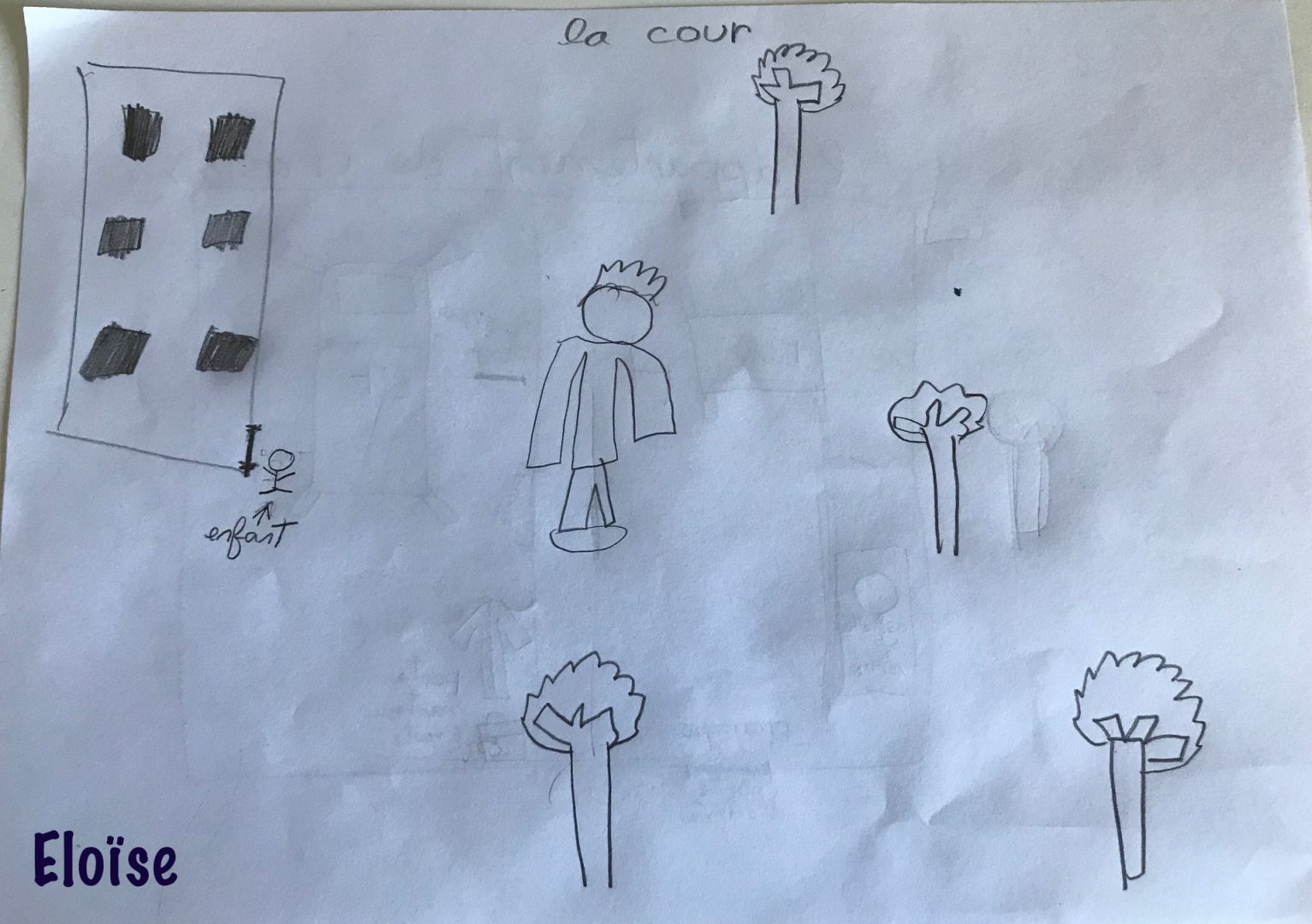 Et une autre s’est trompée de cour : elle a dessiné celle qu’il faut traverser avant d’arriver à l’appartement de Crastaing, et c’est très réussi !