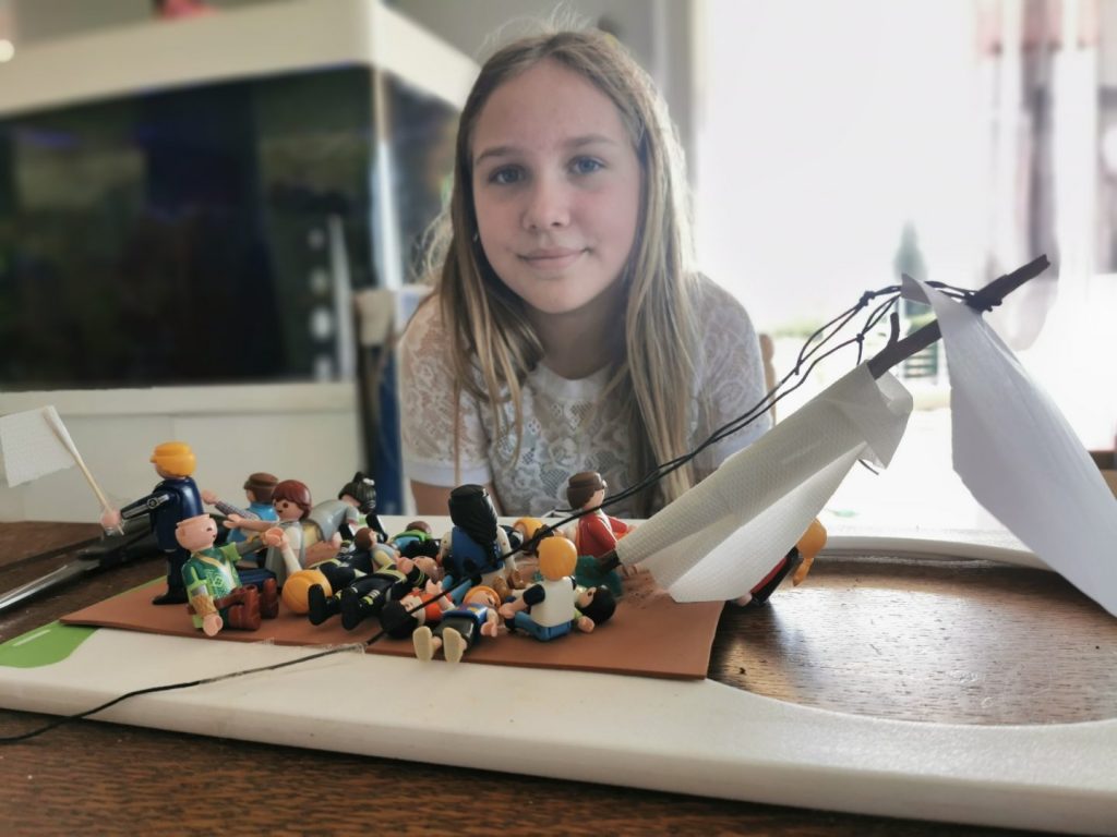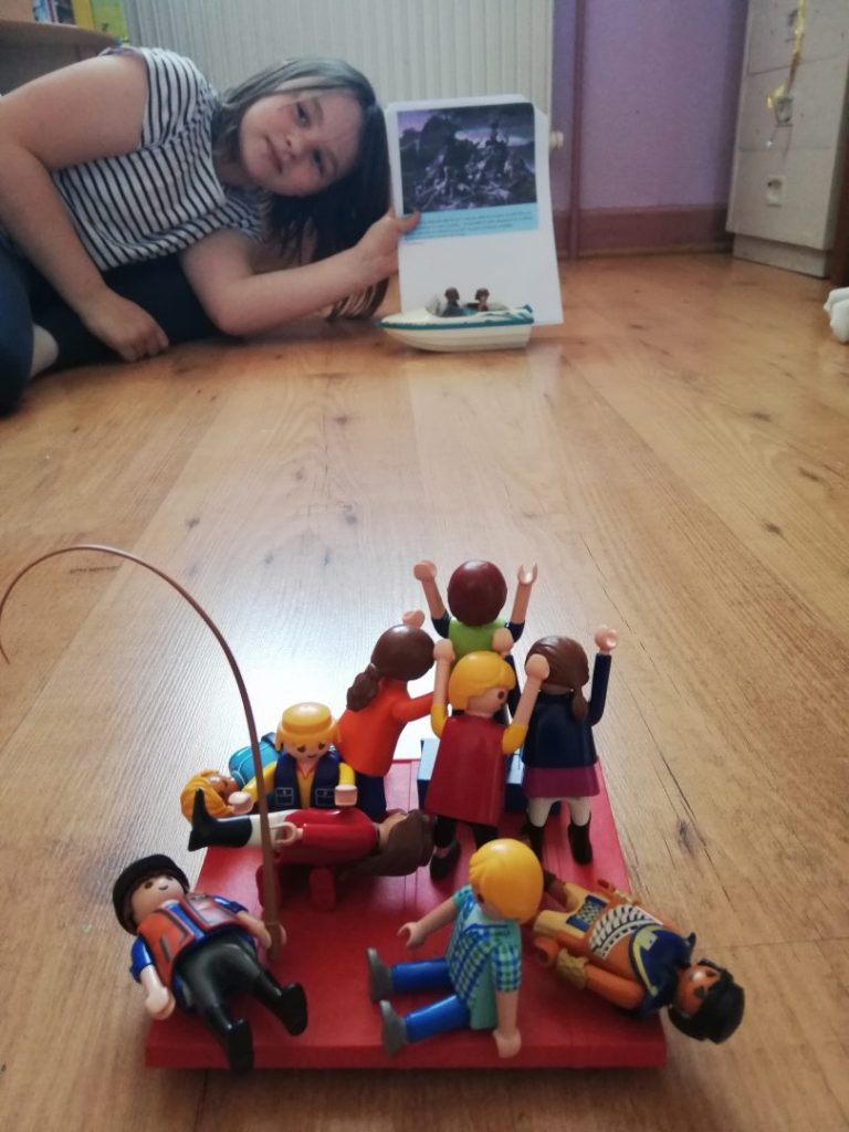 Ensuite, la consigne était de bien l’observer pour reconstituer la scène avec les moyens présents à la maison.