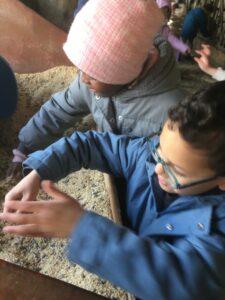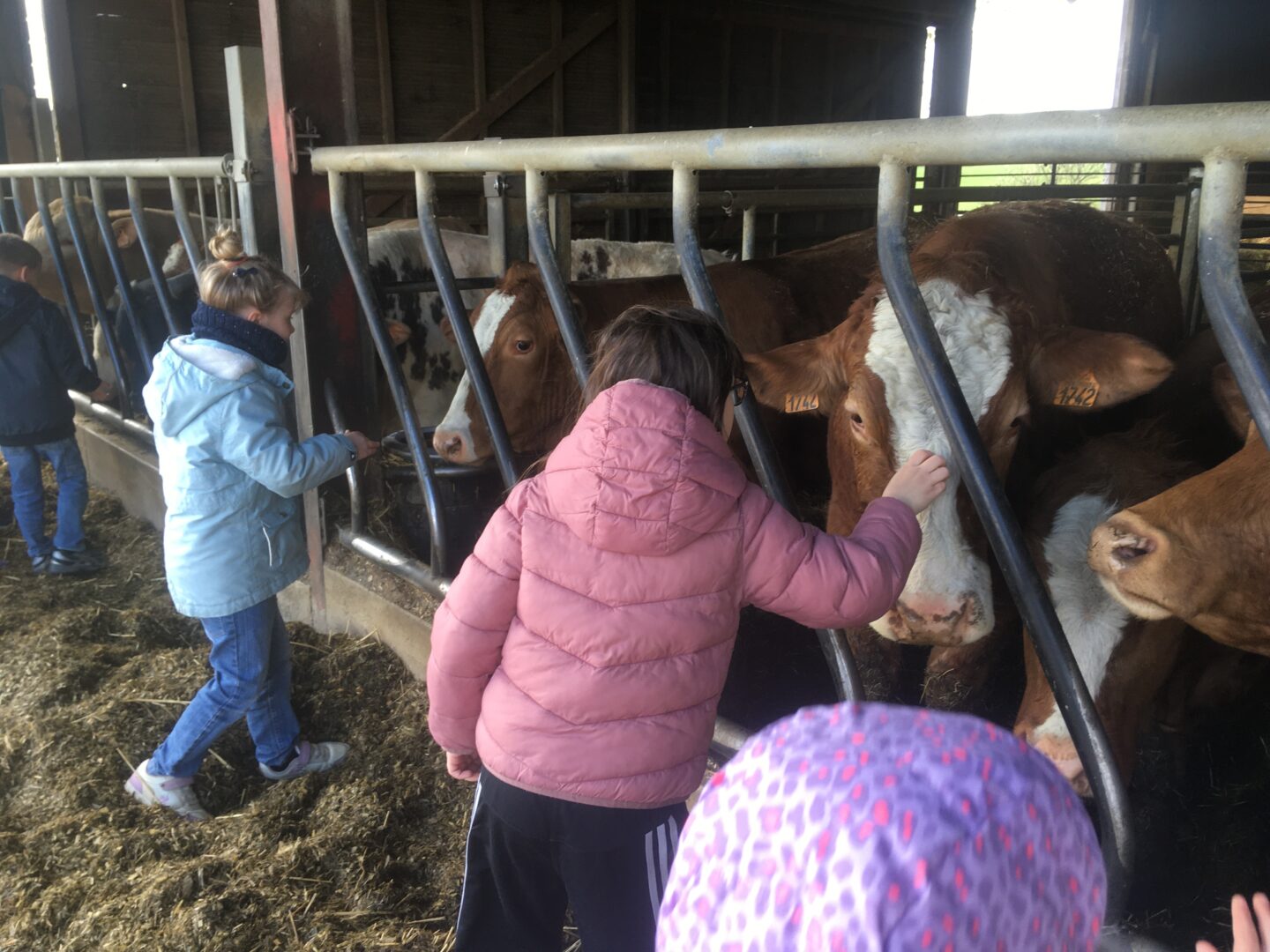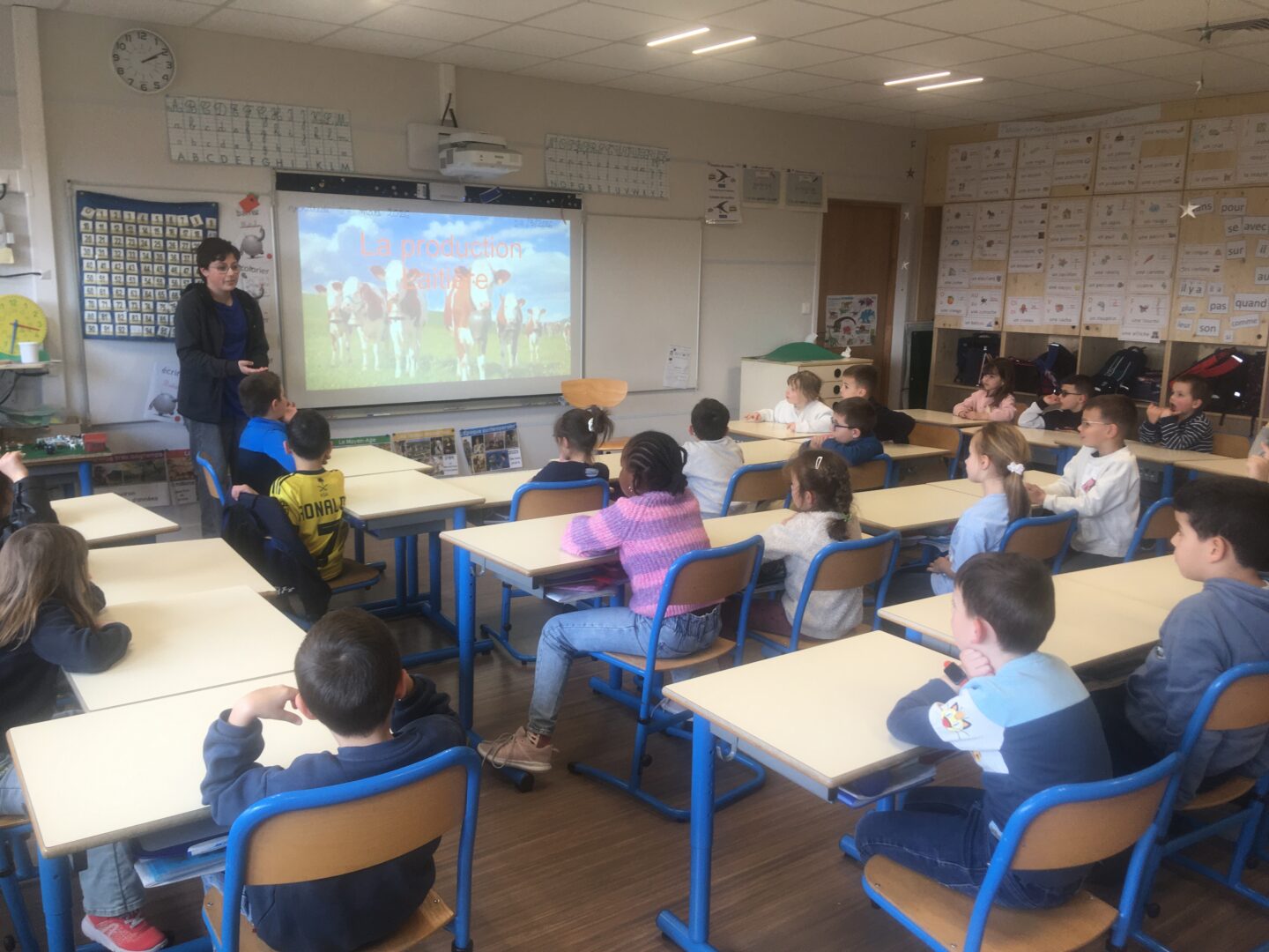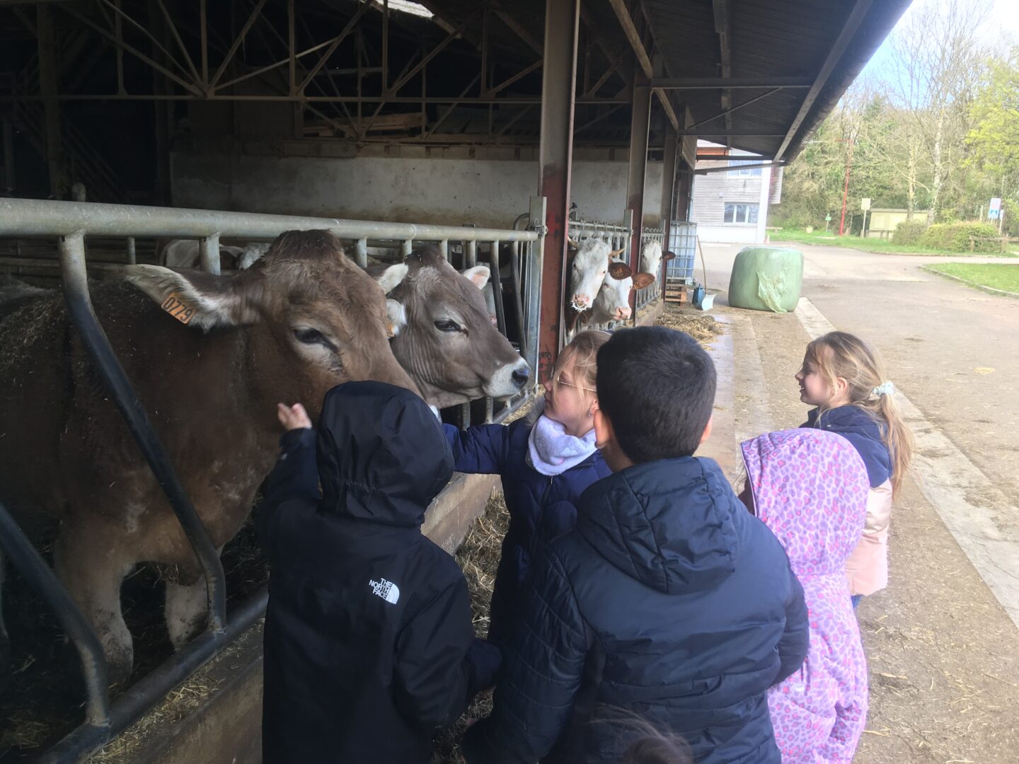 Grâce à l’intervention de Clara Murtin, étudiante en BTS au lycée agricole de Dannemarie S/Crête, les élèves ont pu bénéficier d’une intervention en classe sur la production laitière. Puis, le mardi 31 mars, elle a accompagné la classe jusqu’au lycée pour découvrir la ferme du lycée : vaches laitières, génisses et veaux avec visite de la salle de traite, cochons (truies et porcelets également) puis moutons en éco-pâturage, lapins et poules. Les élèves étaient ravis…