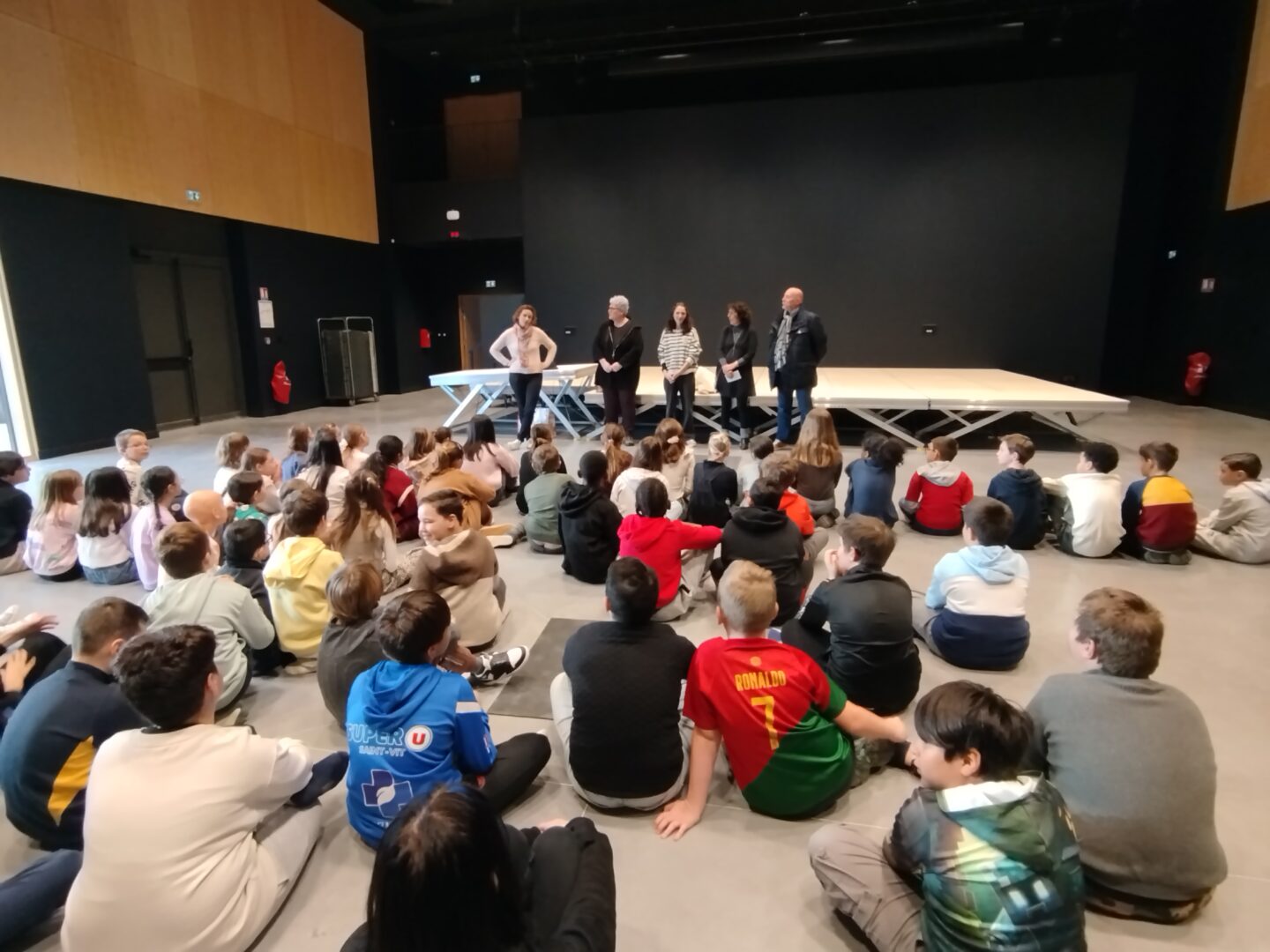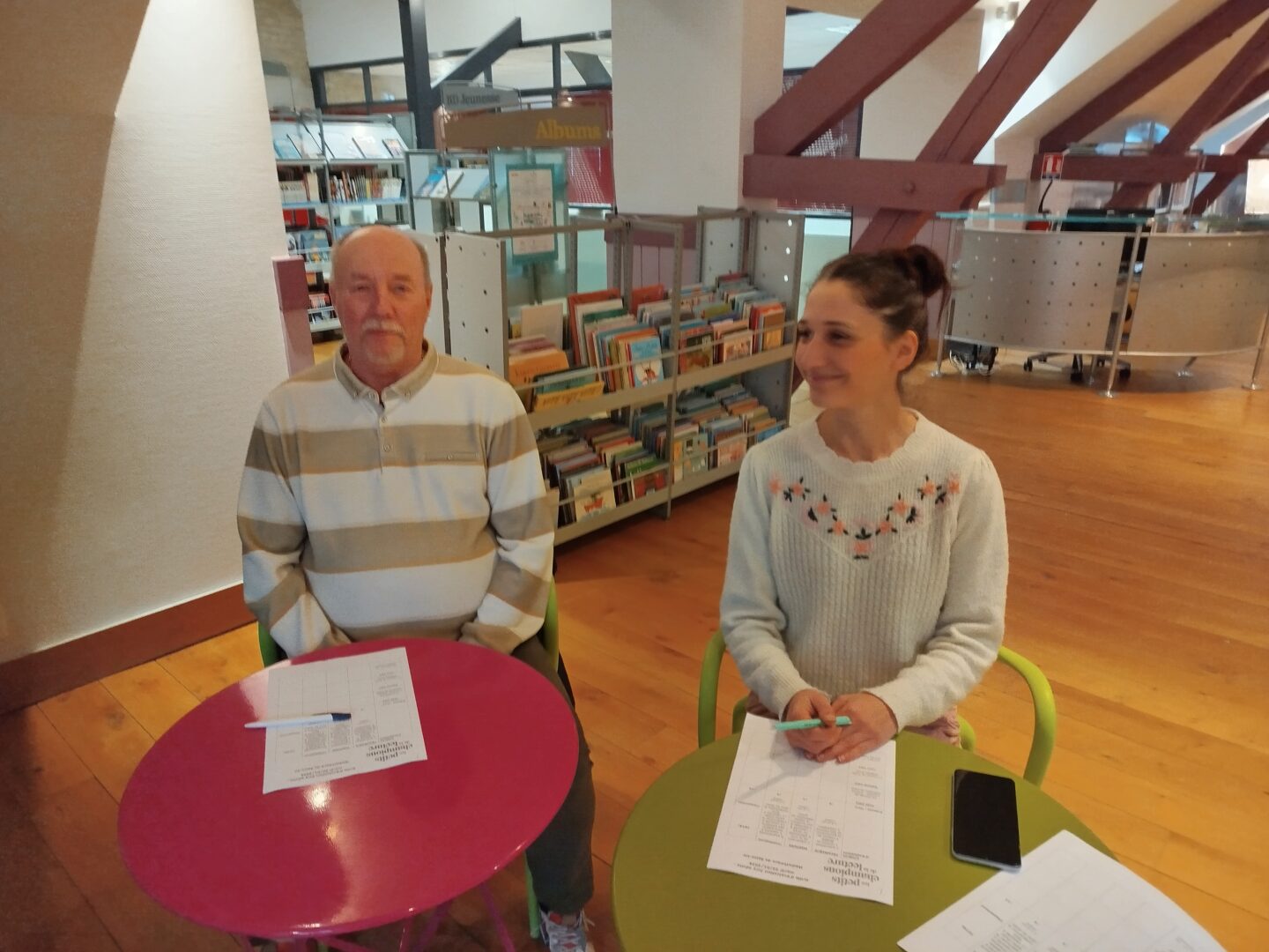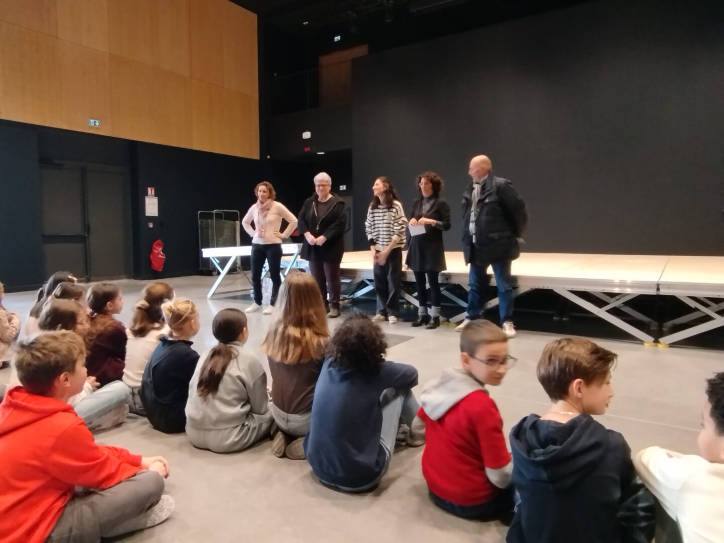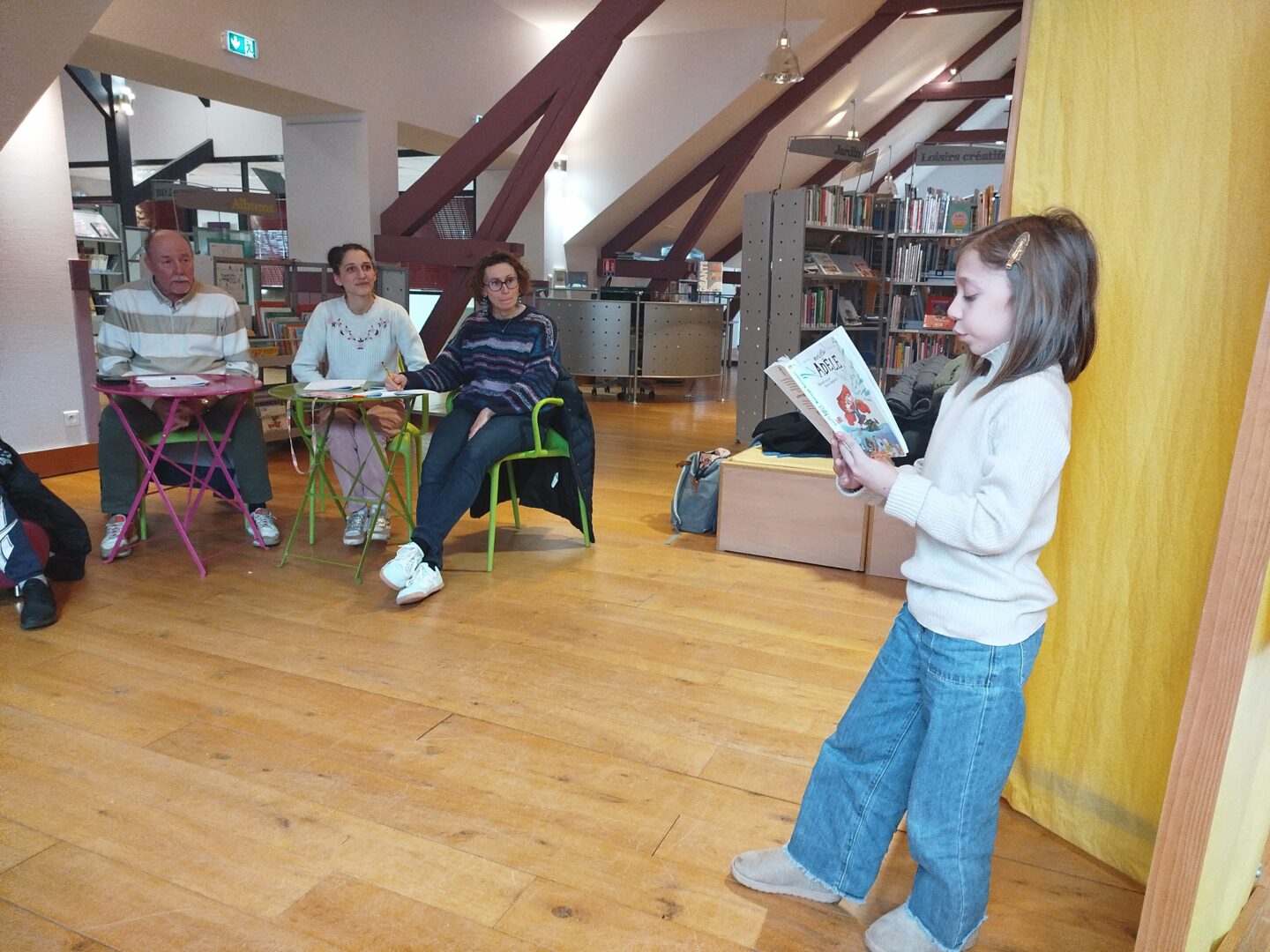 Puis est venu le temps d’organiser la finale école. Nous avons constitué un vrai jury, qui s’est rendu disponible pour deux matinées complètes, d’abord le mardi 13 janvier pour les CM1-CM2 et le mardi 20 janvier pour les CM2. Un grand merci à tous les cinq : Mme Le Gorrec, Mme Hurter, Mme Saulnier, M. Nicollin, et Mme Barsanti de la Médiathèque de Saint-Vit, où les classes ont été très bien accueillies, avec petit goûter et des rafraichissements pendant la pause !