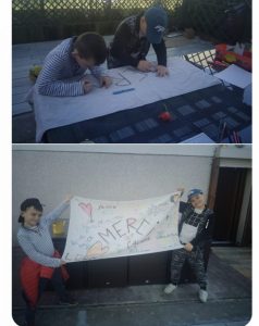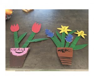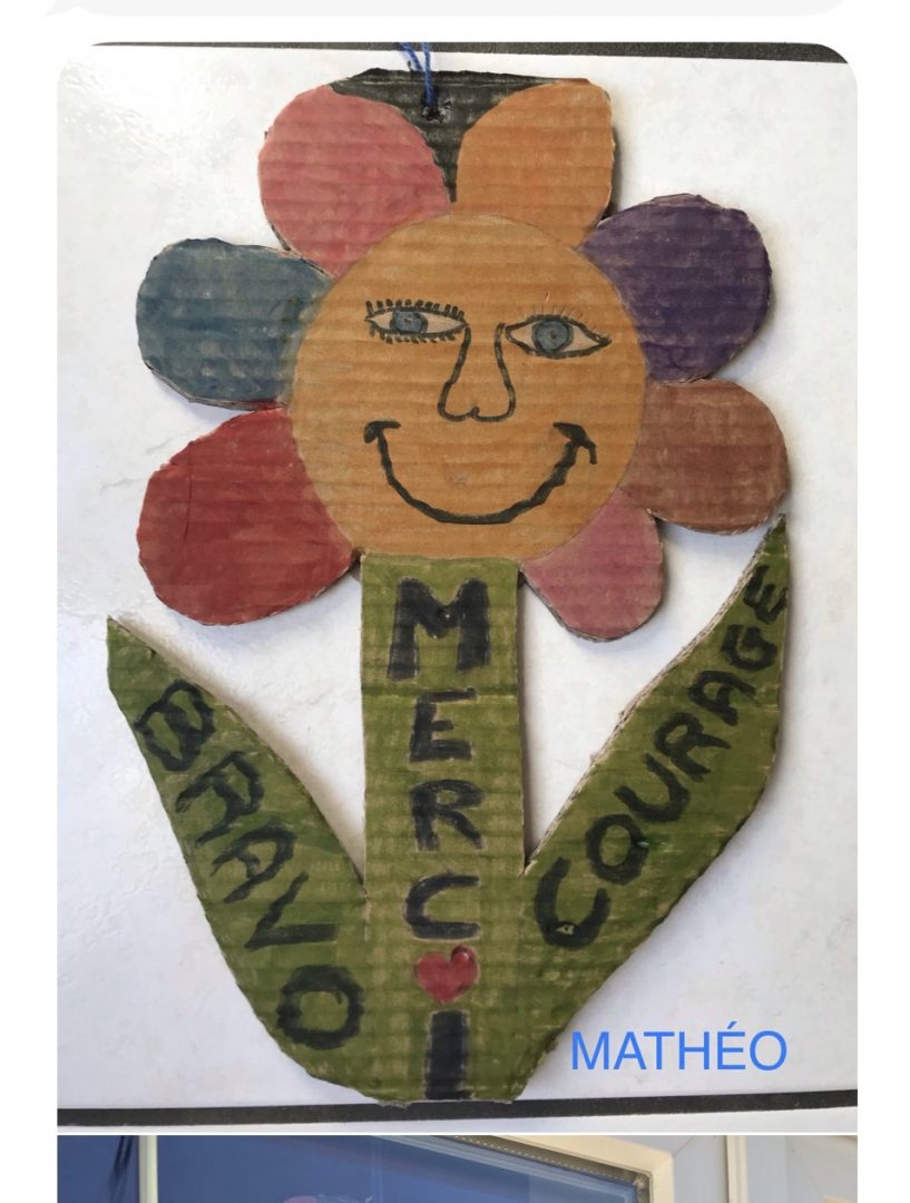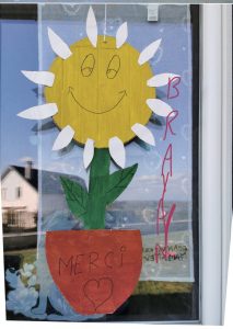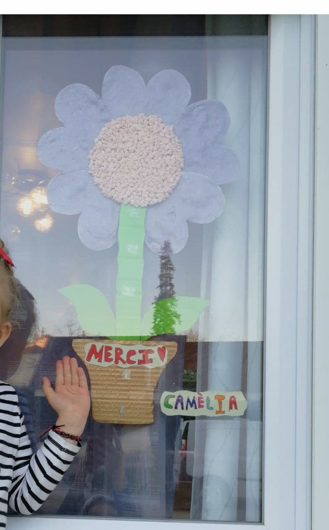 Un défi pour les GS CP :  fabriquer une fleur et la mettre à la fenêtre pour remercier tous les travailleurs, infirmiers docteurs, éboueurs, hôtesses de caisse , pompiers, ambulanciers, routiers etc …