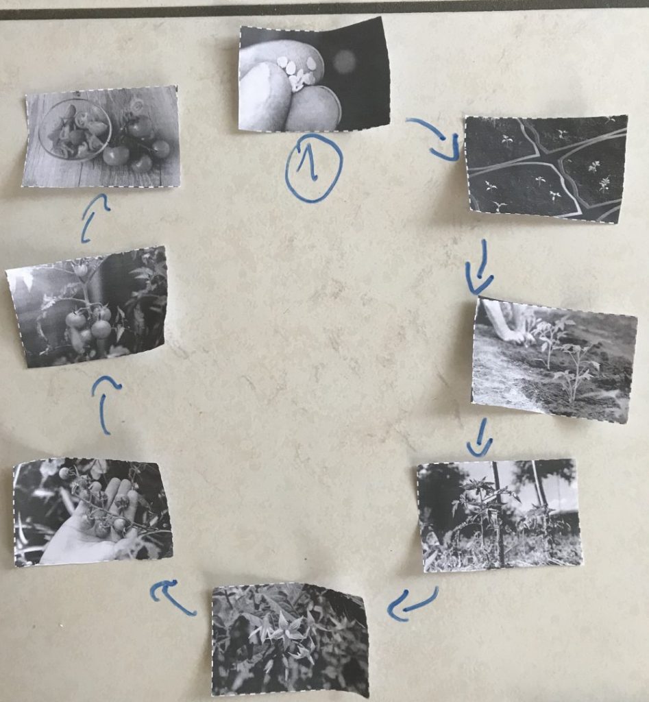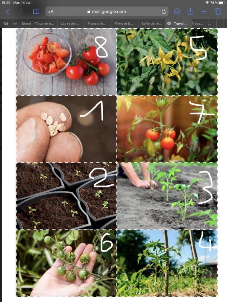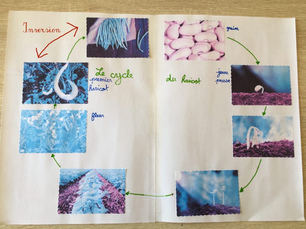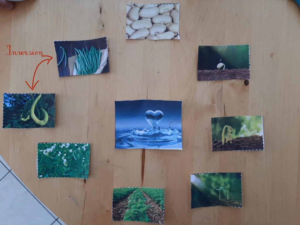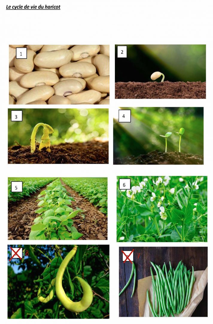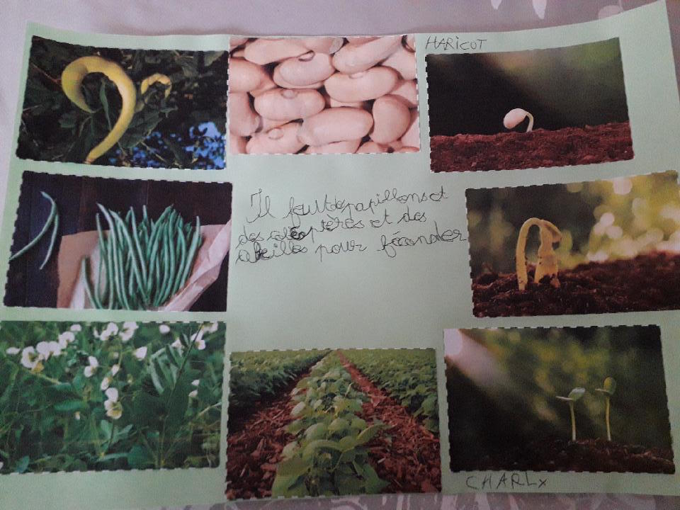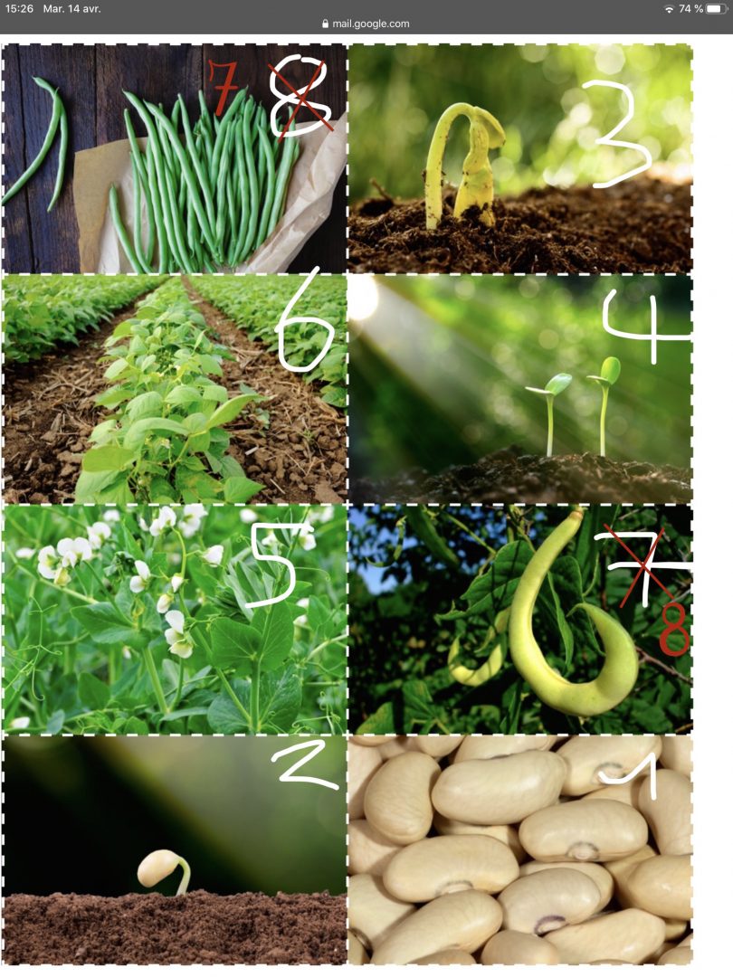 Les élèves de CM ont reçu des photos du développement des graines de haricot et de tomates (issues des documents de « Sciences à vivre » des éditions Access) et ont dû les remettre dans l’ordre. En période de confinement, plusieurs façons de faire étaient possibles. Voici différents résultats très réussis (on peut cliquer sur les photos pour les voir en plus gros) :