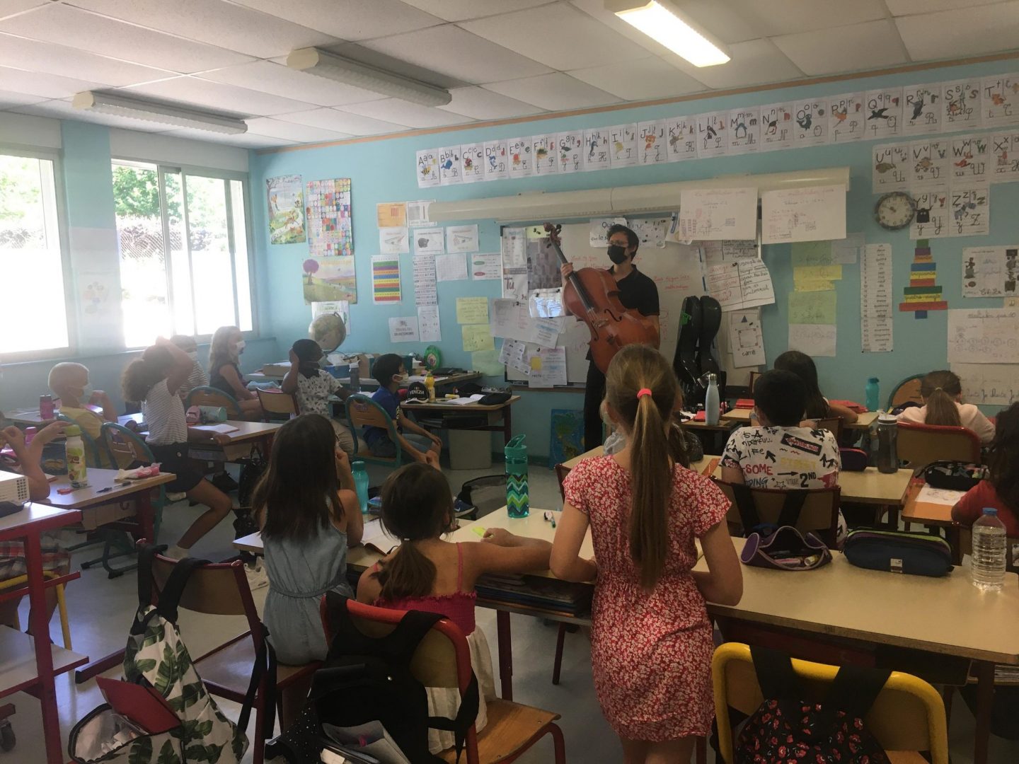Aujourd’hui, Jules, professeur de violoncelle au conservatoire de Besançon, est venu dans notre école accompagné de son instrument. Les élèves étaient ravis!