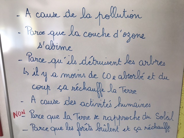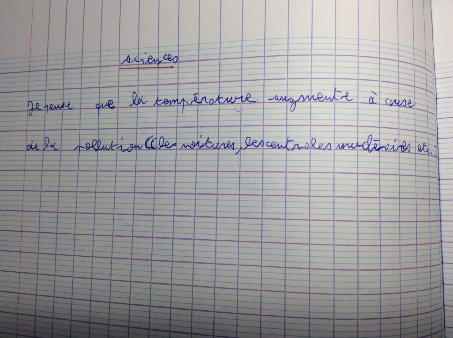 En sciences, les CM travaillent depuis peu sur le réchauffement climatique.