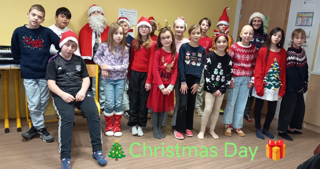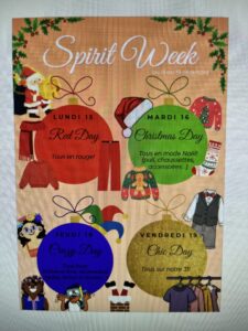 La semaine avant les vacances de Noël, toute l’école s’est habillée chaque jour sur un thème différent lié à Noël :