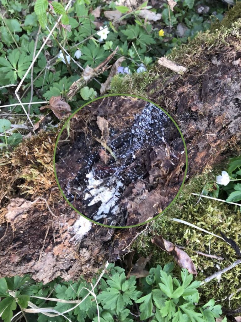 du mycélium qui poussait sur un morceau de bois en décomposition :