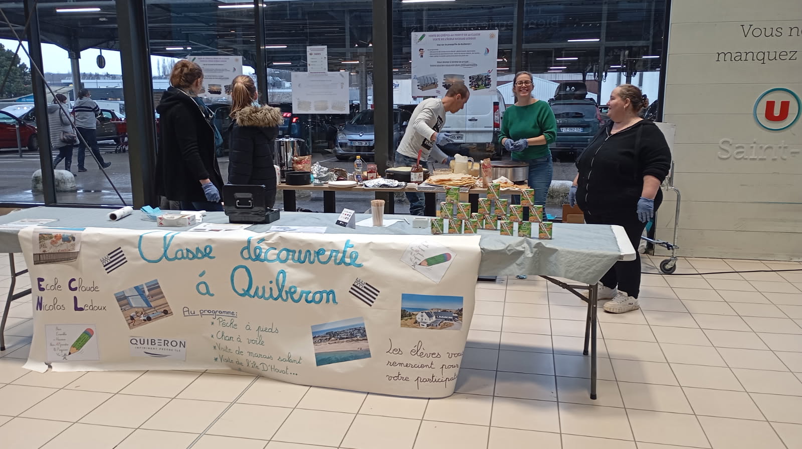 Ce samedi 22 février, premier jour des vacances scolaires, de nombreux parents se sont mobilisés pour vendre des crêpes. Les bénéfices de ces ventes sont destinés à diminuer le coût du voyage scolaire qui aura lieu à Saint-Pierre-de-Quiberon du 6 au 12 avril, pour les élèves de CE2, CM1 et CM2  de l’école.