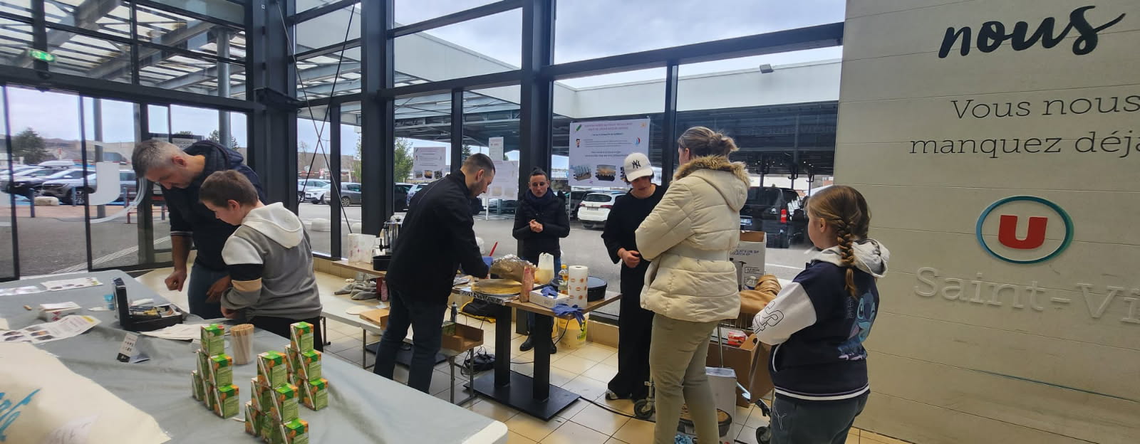 La vente a eu lieu à SuperU (Saint-Vit), le magasin ayant offert l’emplacement et 10 litres de pâte à crêpes. Les ventes ont été fructueuses, de nombreux clients ayant acheté les bonnes crêpes proposées tout au long de la journée.